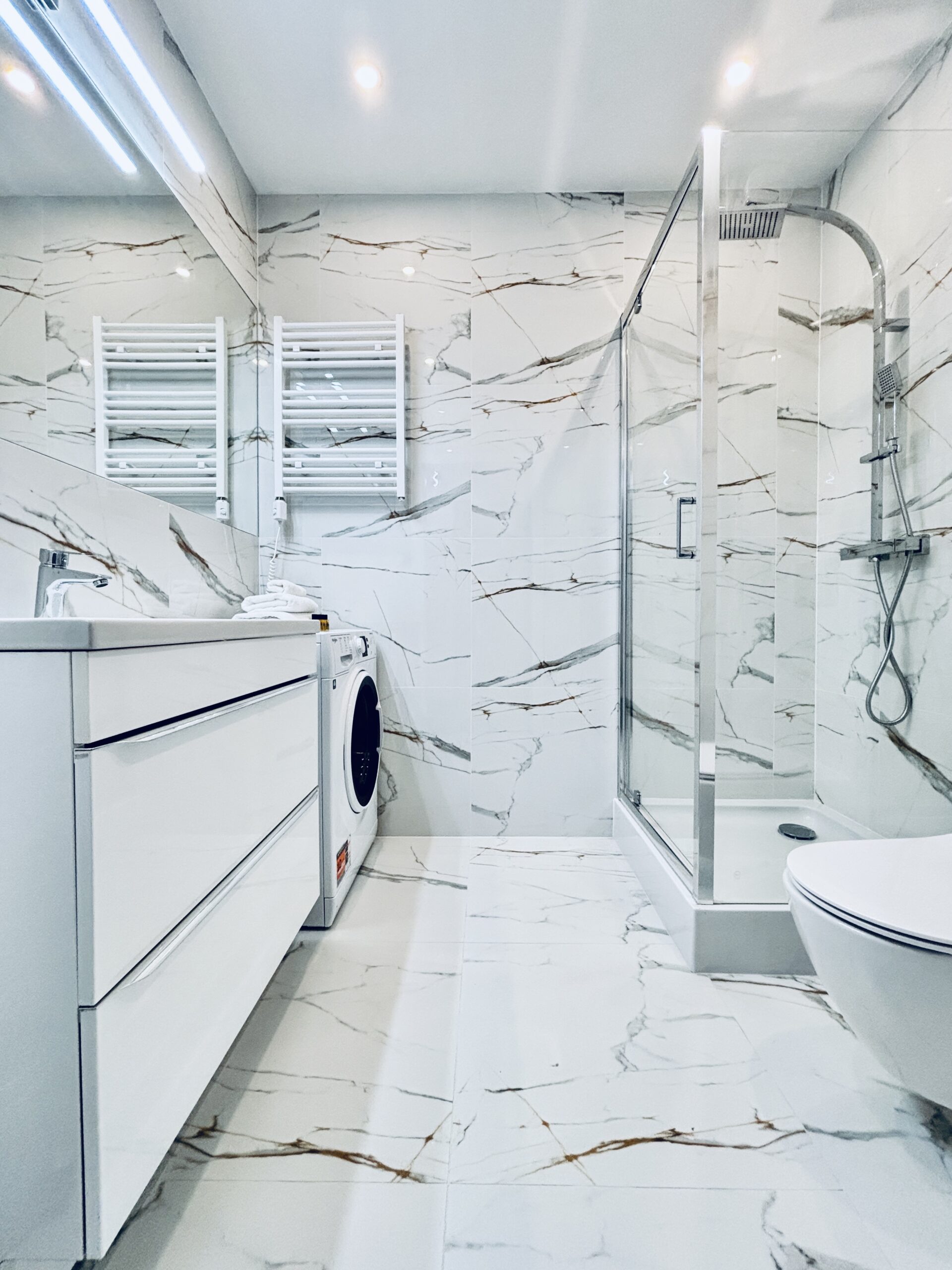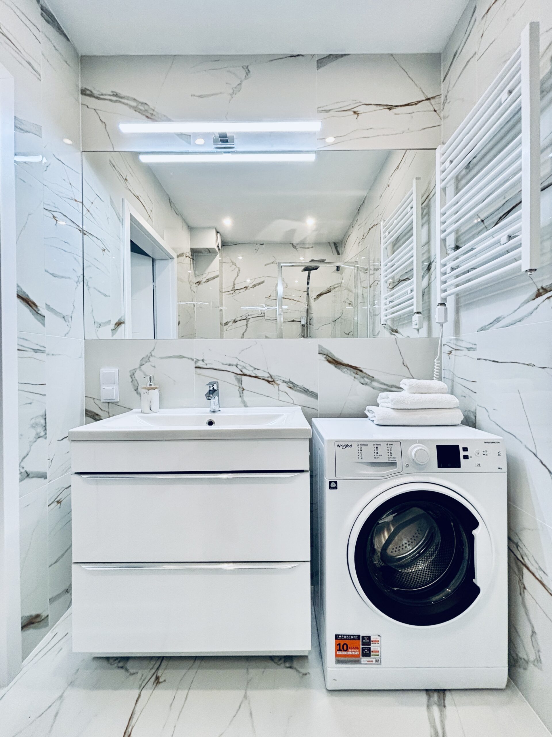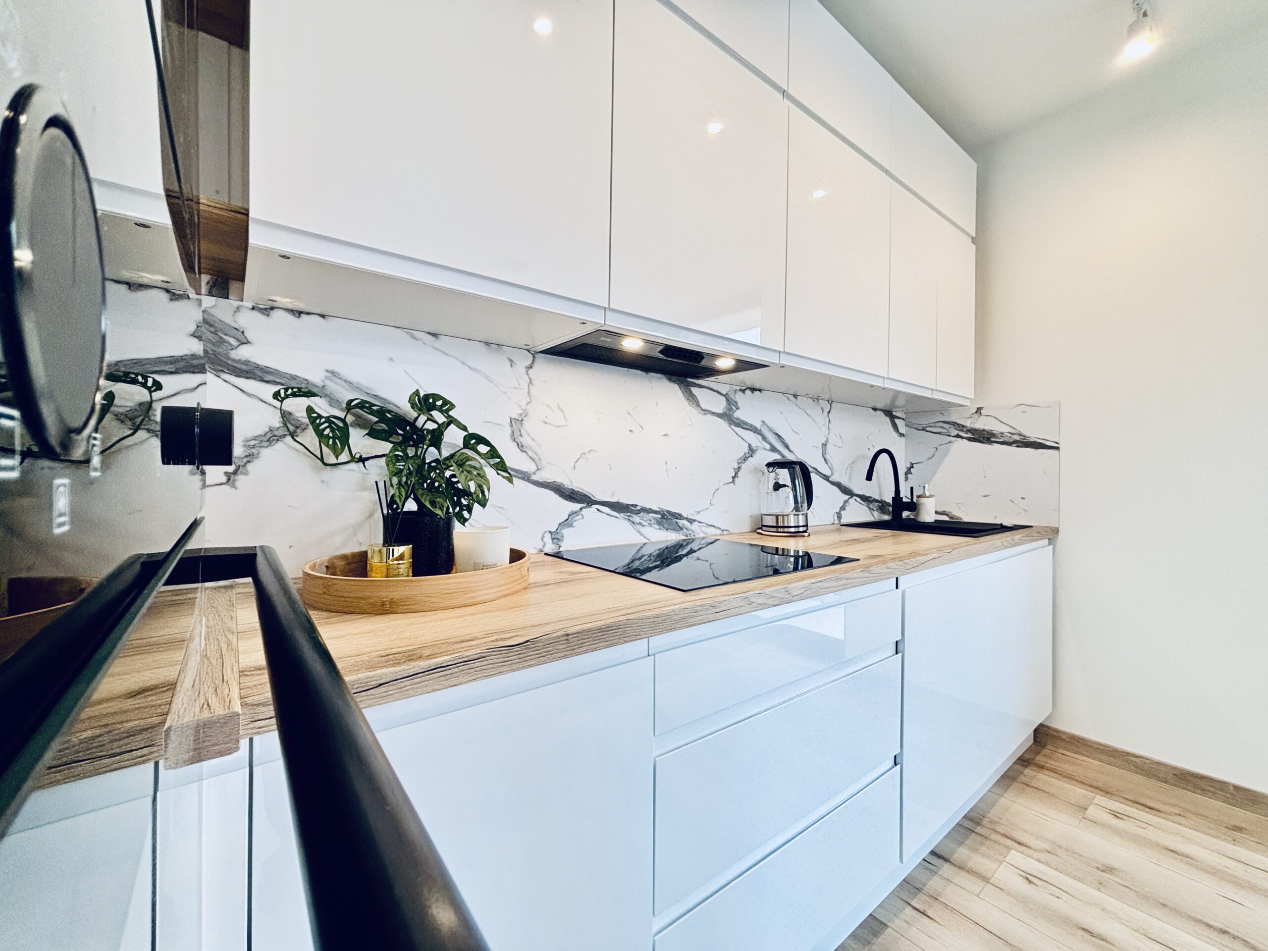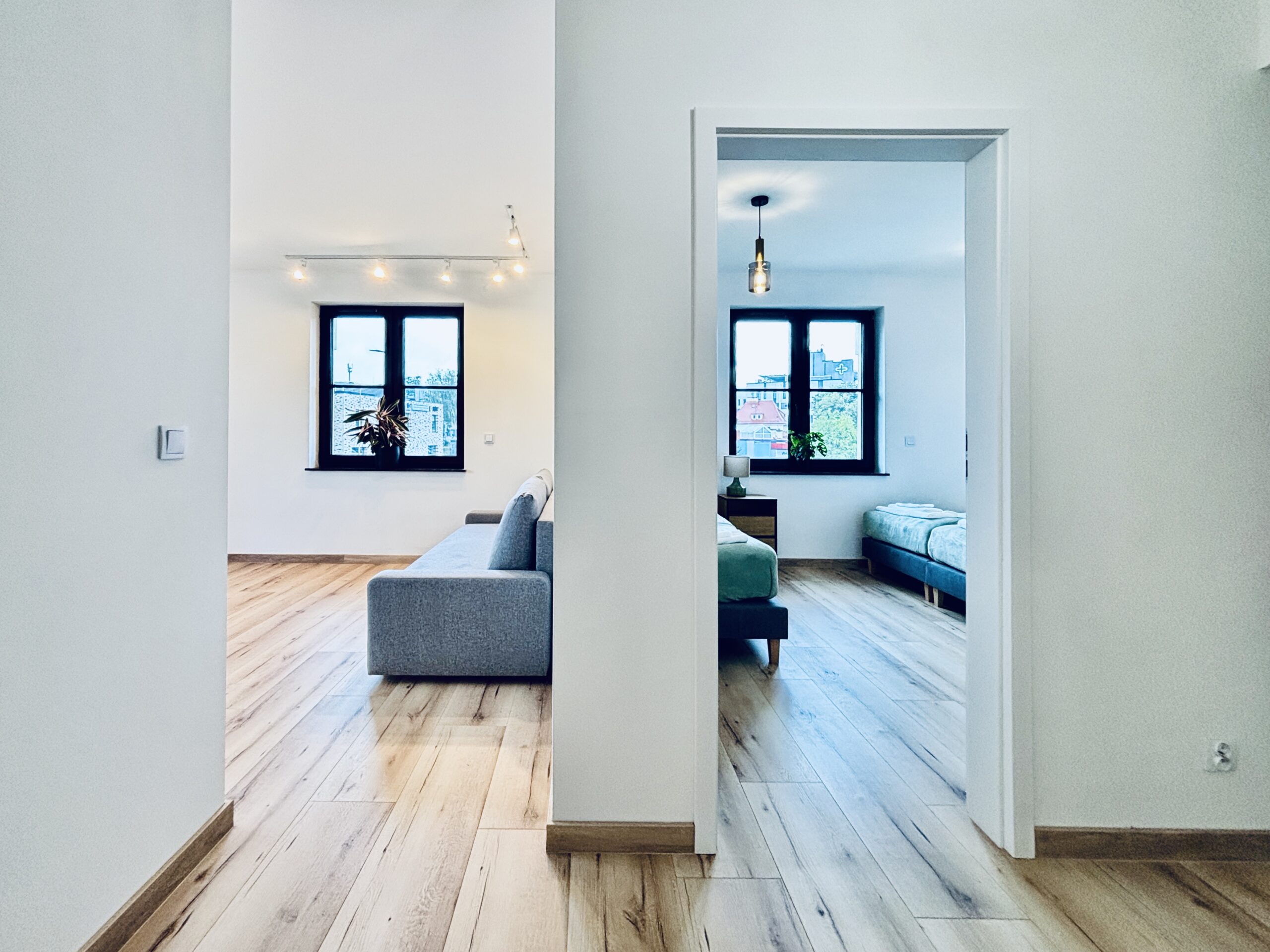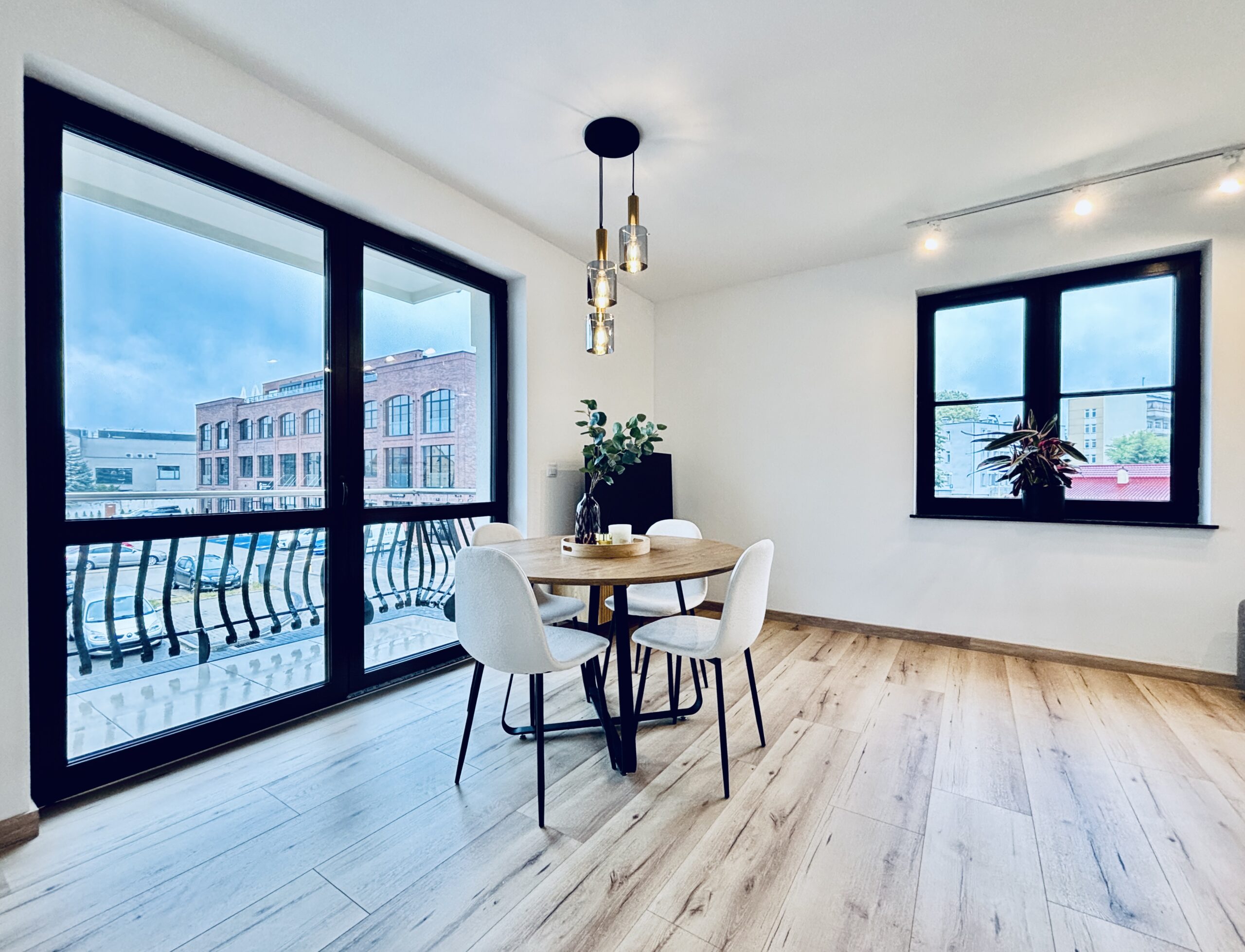 We invite you to stay in our spacious apartment featuring a separate bedroom with three single continental beds and a sofa bed in the living room. The fully equipped kitchenette, connected to the dining area, provides everything needed to prepare and enjoy meals comfortably on site. Additional comfort is ensured by amenities such as underfloor heating, a smart TV with cable channels, high-speed Wi-Fi, and a washing machine.